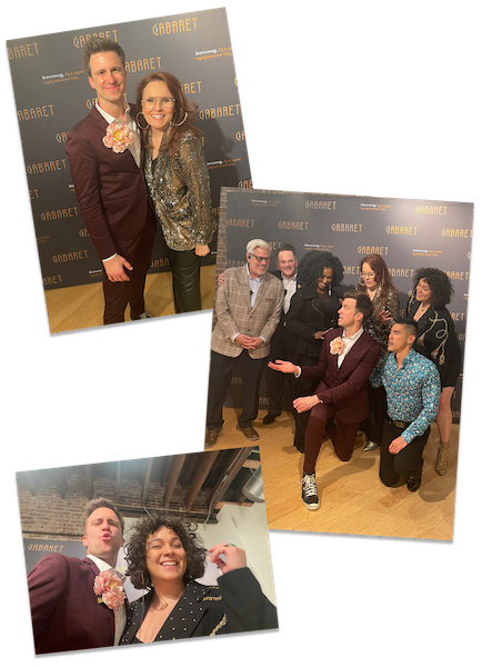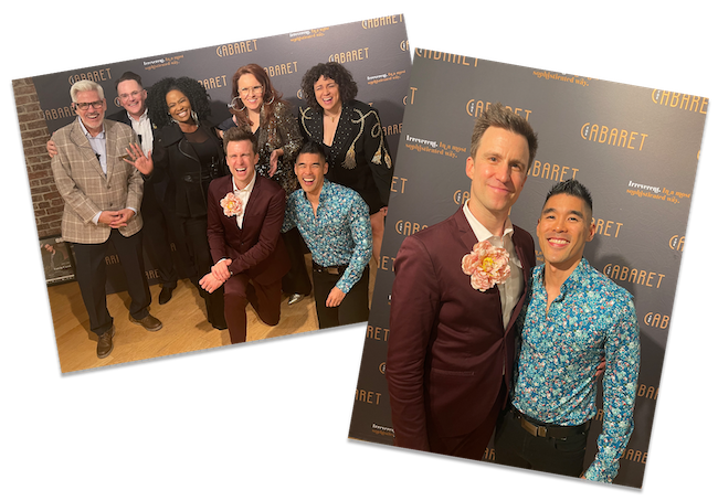 Gavin’s flower brooch, Gavin with Music Director Chris Kong, Gavin with a written message reading “See you next time X Gavin Creel”